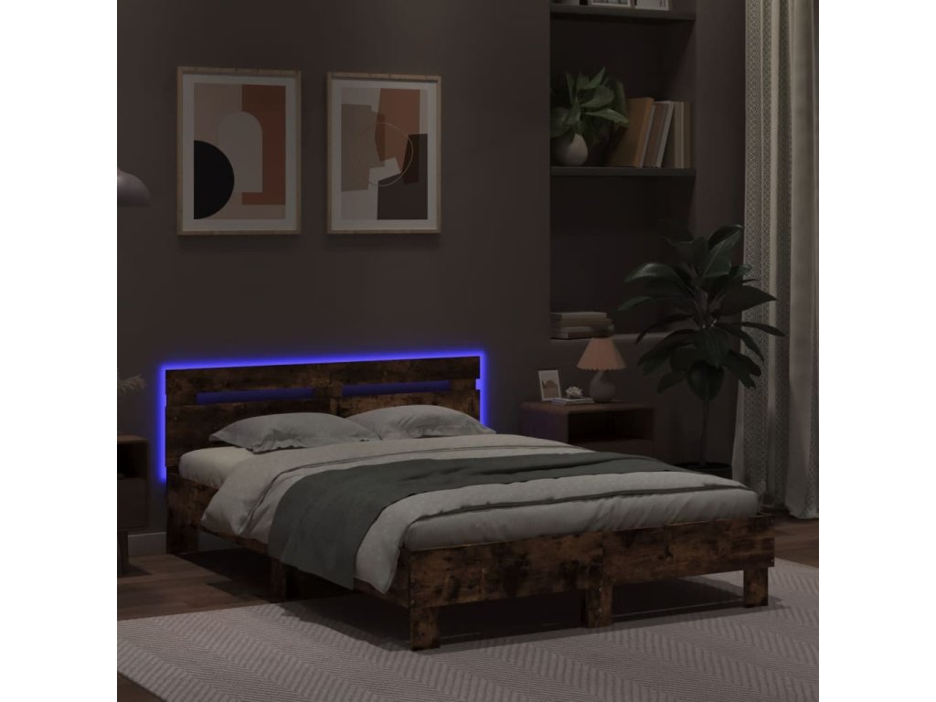 Rám postele s čelem a LED osvětlením kouřový dub 135 x 190 cm 3207571
