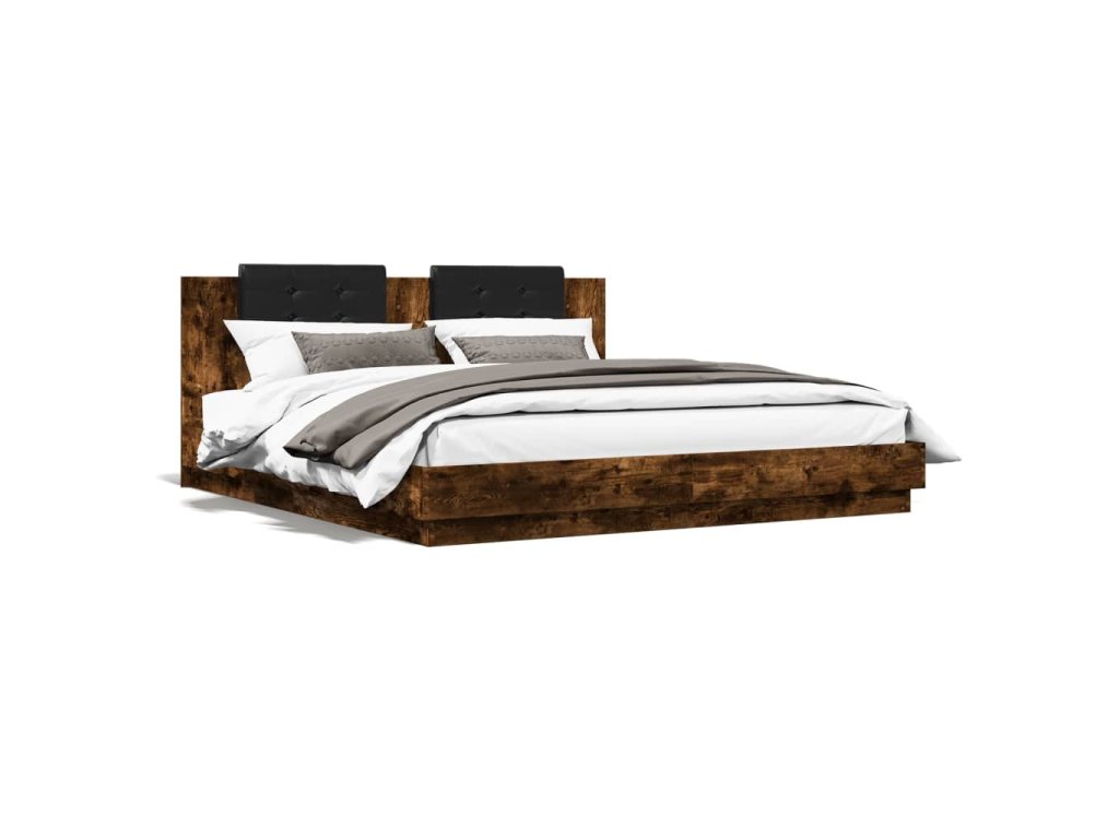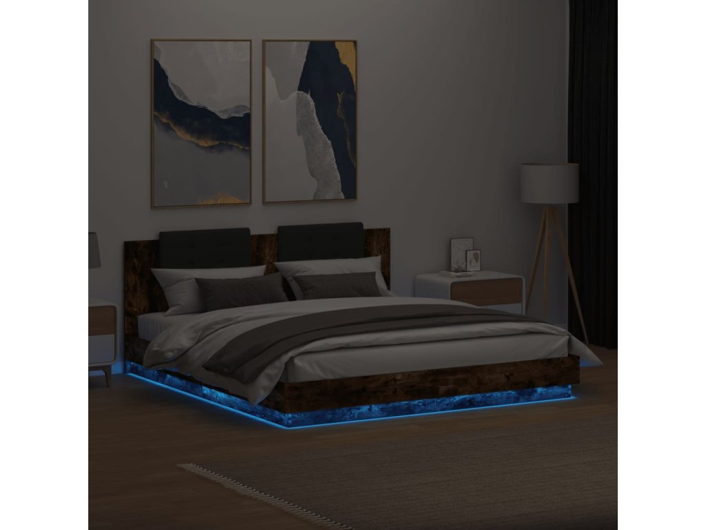 Rám postele s čelem a LED osvětlením kouřový dub 180x200 cm 3209993