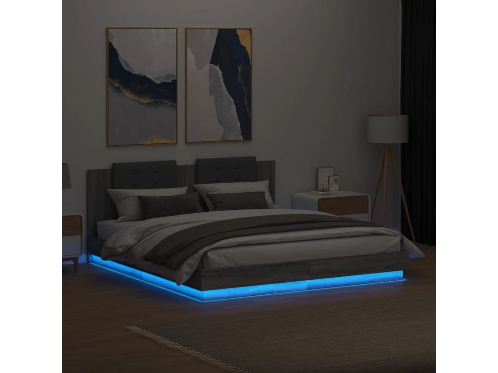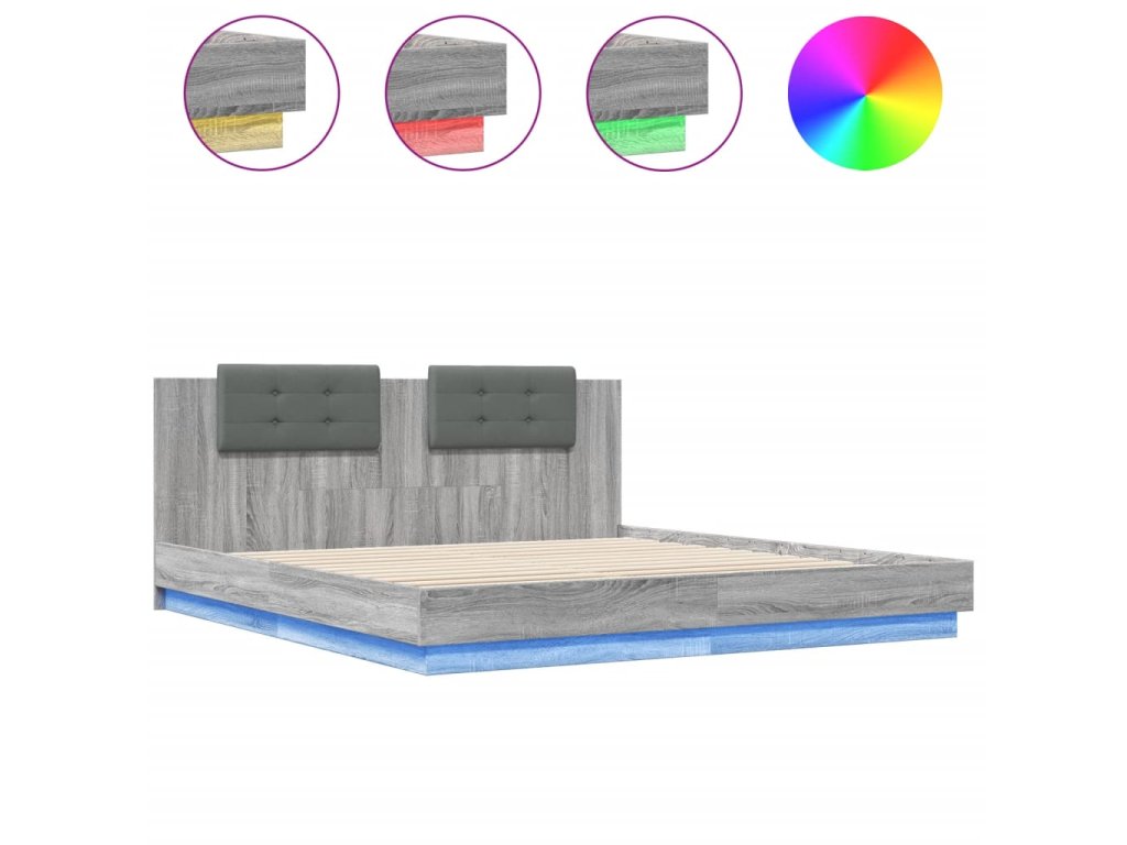 Rám postele s čelem a LED osvětlením šedý sonoma 160x200 cm 3210001