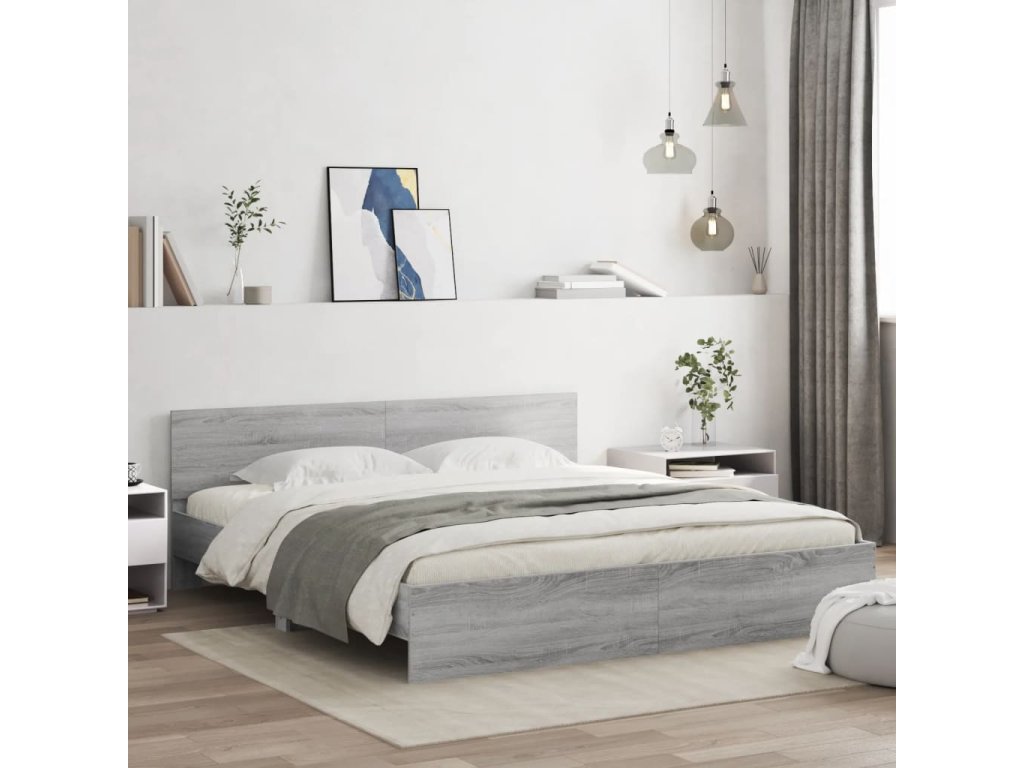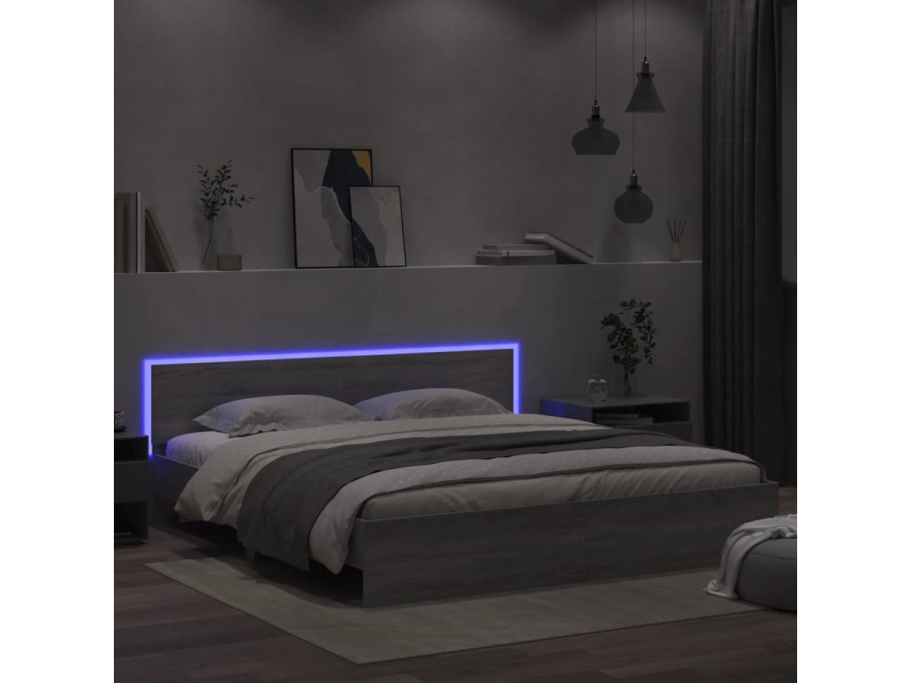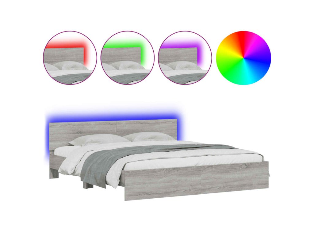 Rám postele s čelem a LED osvětlením šedý sonoma 180 x 200 cm 3207593