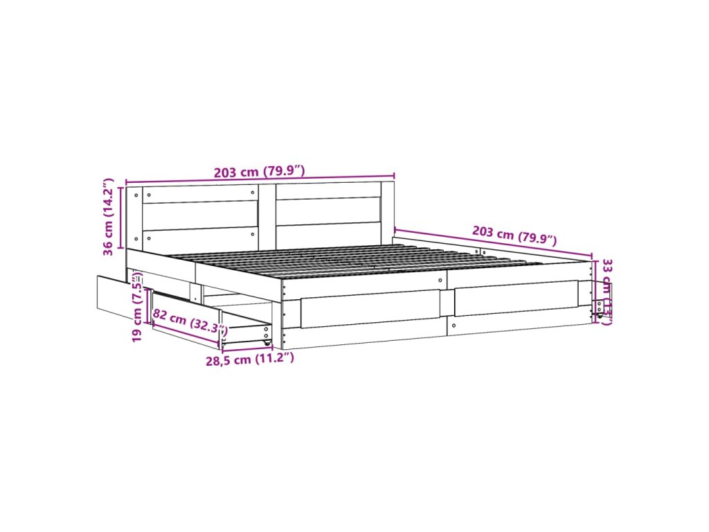 - Úložná funkce: Tento rám postele je vybaven zásuvkami pro přehledné uložení časopisů, knih, hraček a dalších drobných předmětů.