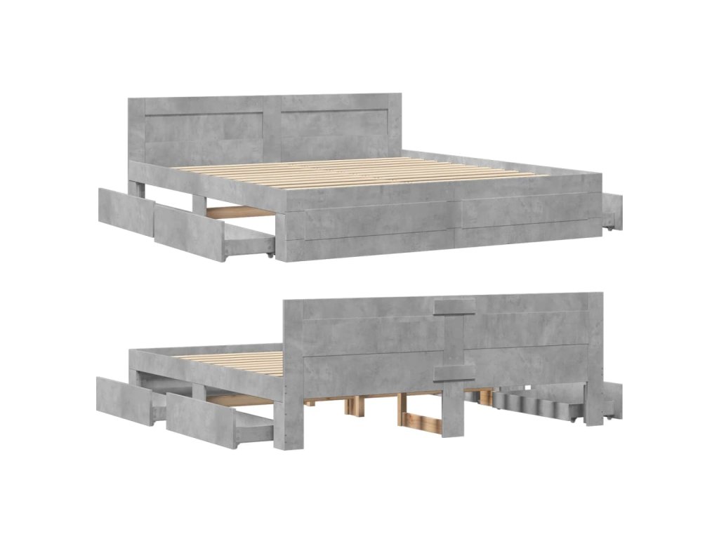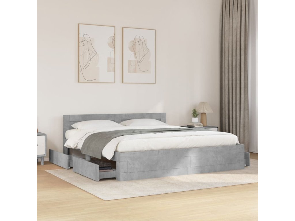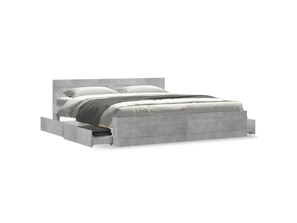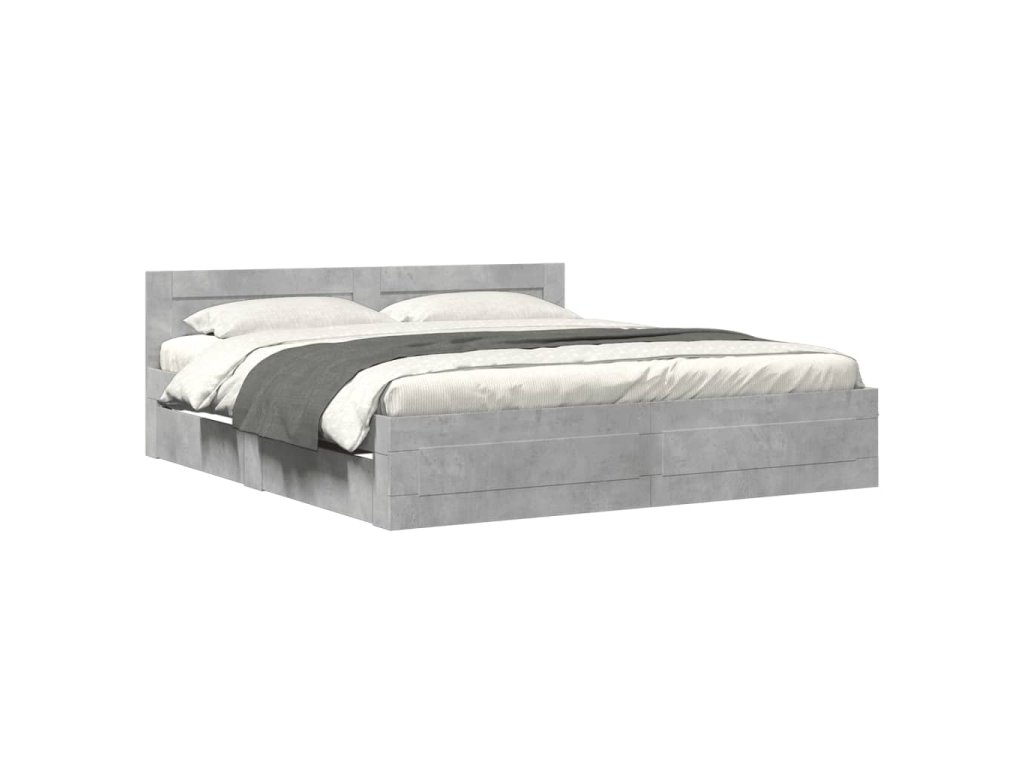 Rám postele s čelem betonově šedý 200 x 200 cm kompozitní dřevo 3295537