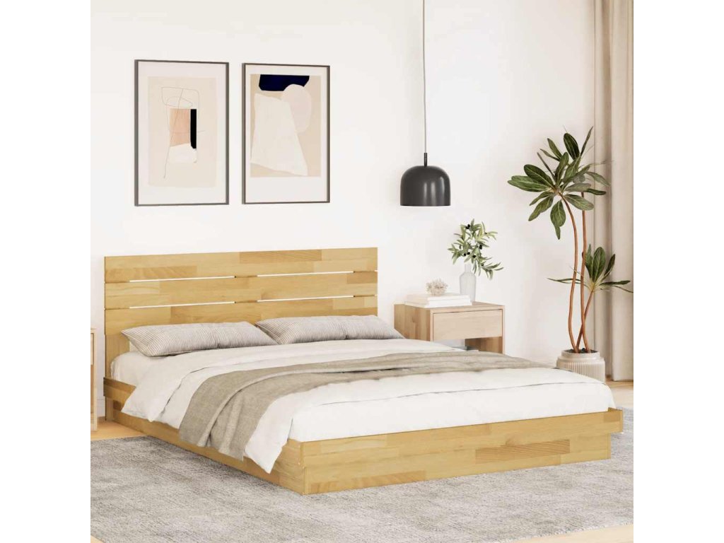 Rám postele s čelem bez matrace 135x190 cm Dubový masiv 3315745