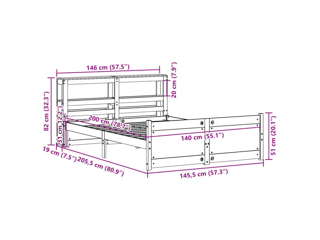 - Rozměry čela postele: 146 x 19 x 82 cm (D x Š x V)