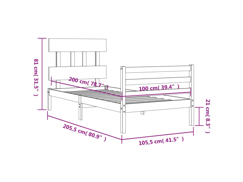 - Celkové rozměry postele: 205,5 x 105,5 x 81 cm (D x Š x V)
