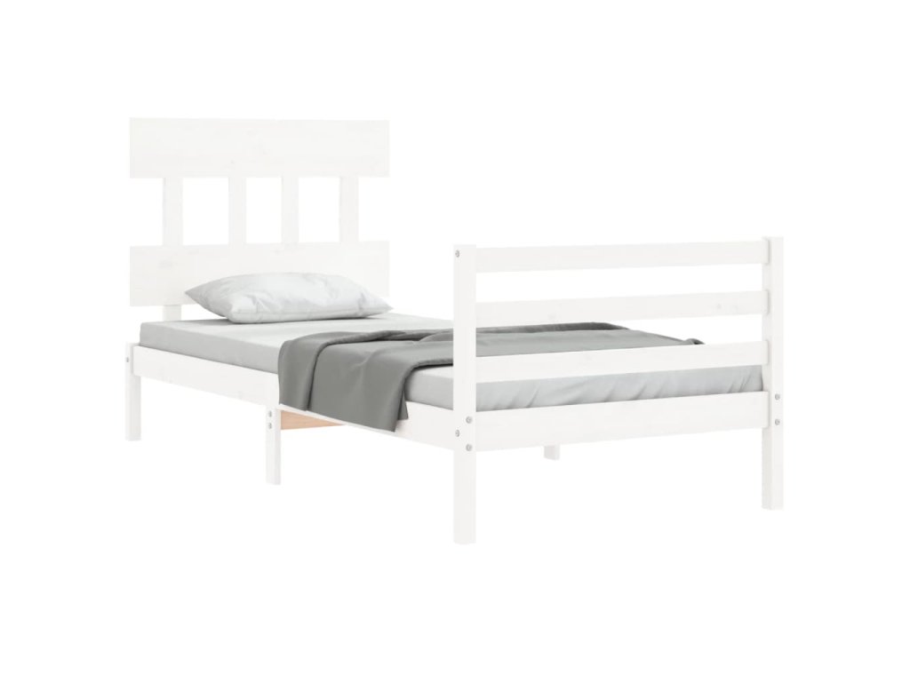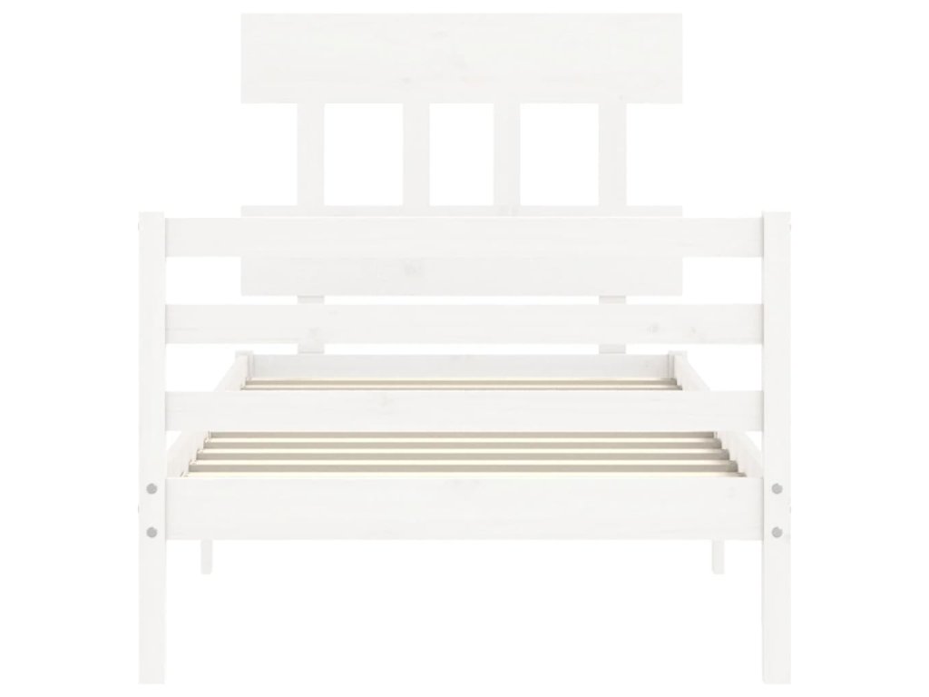 Rám postele s čelem bílý 100 x 200 cm masivní dřevo 3195147