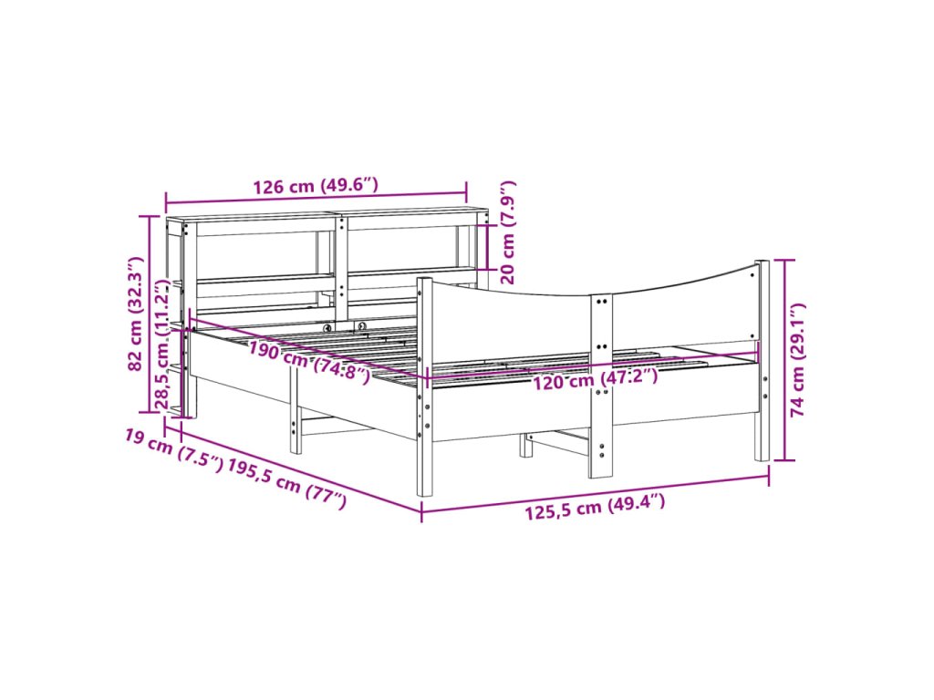 Rám postele s čelem bílý 120 x 190 cm masivní borovice 3306322