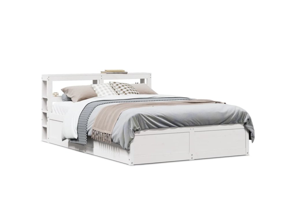 Rám postele s čelem bílý 140 x 200 cm masivní borové dřevo 3306343