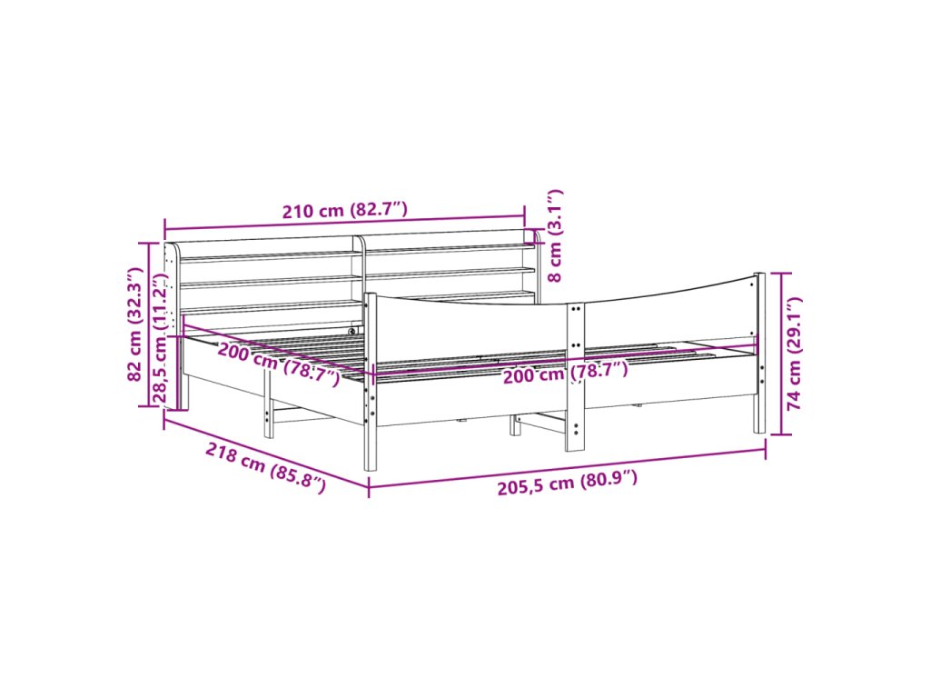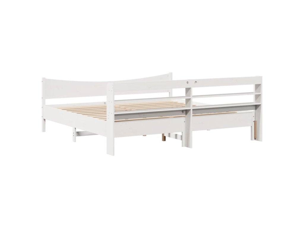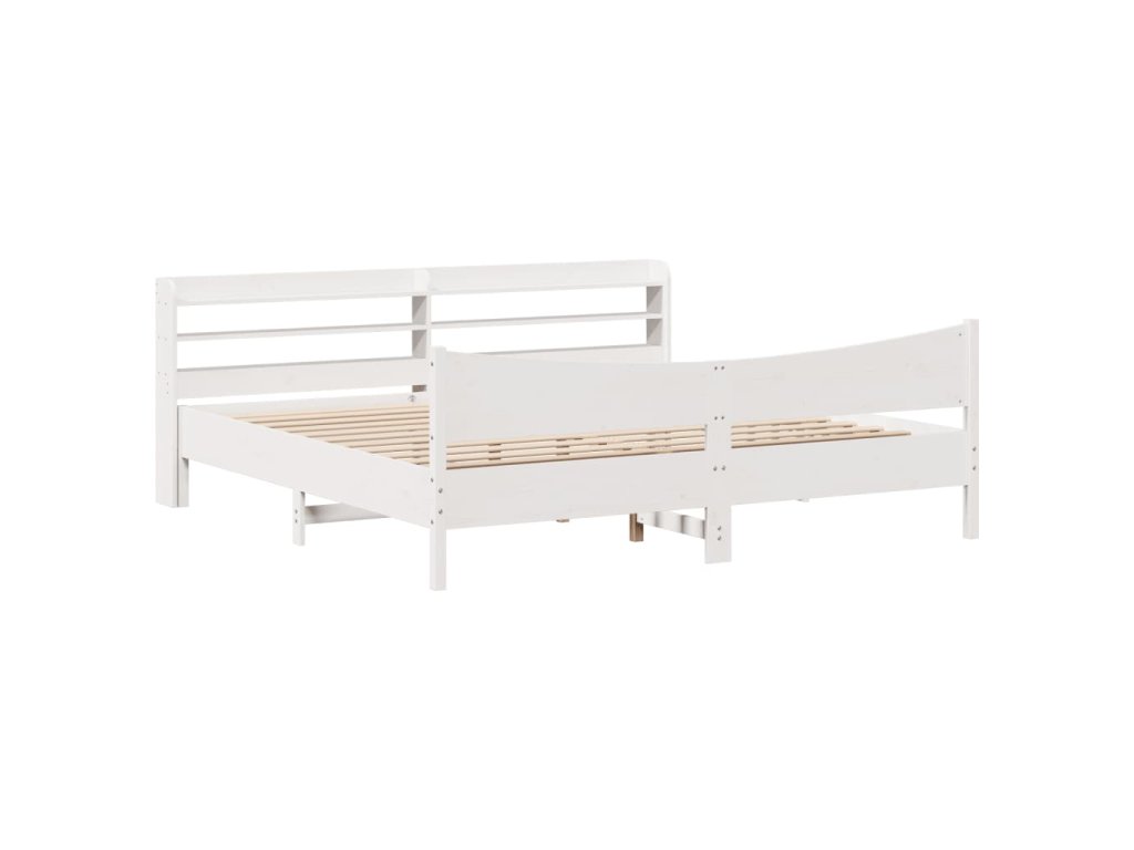 Rám postele s čelem bílý 200 x 200 cm masivní borové dřevo 3307033