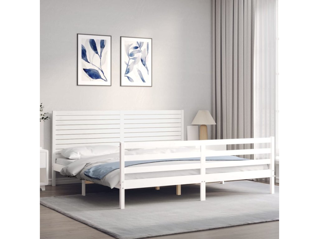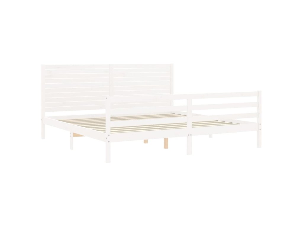 Rám postele s čelem bílý 200 x 200 cm masivní dřevo 3195047