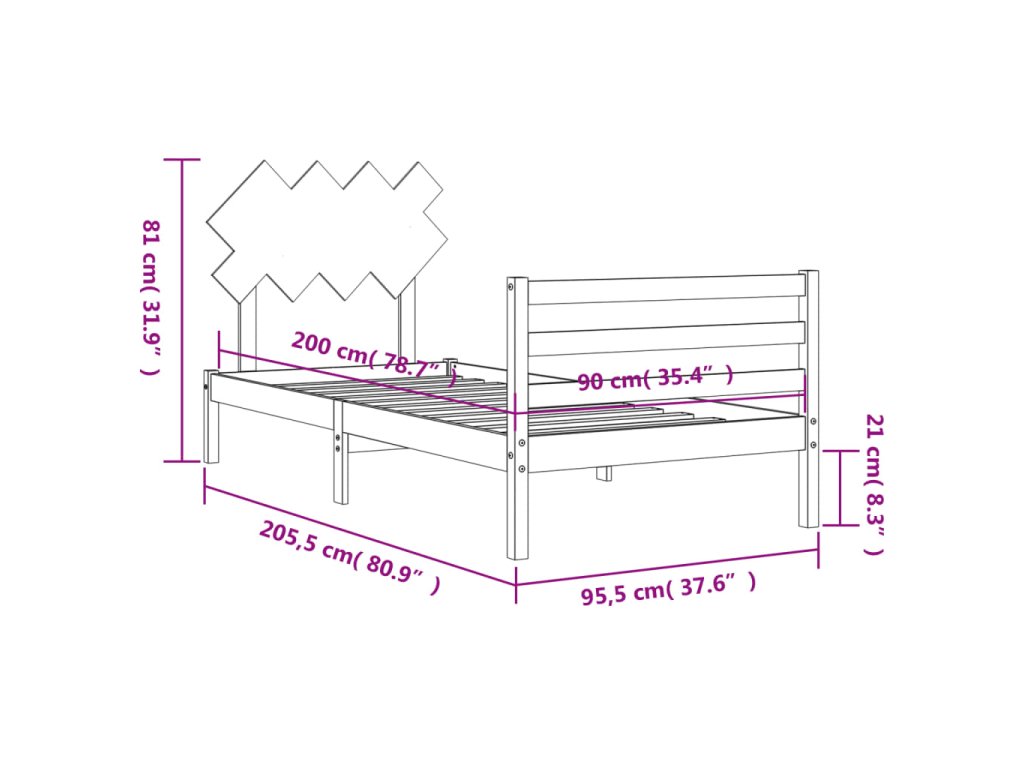 - Celkové rozměry postele: 205,5 x 95,5 x 81 cm (D x Š x V)