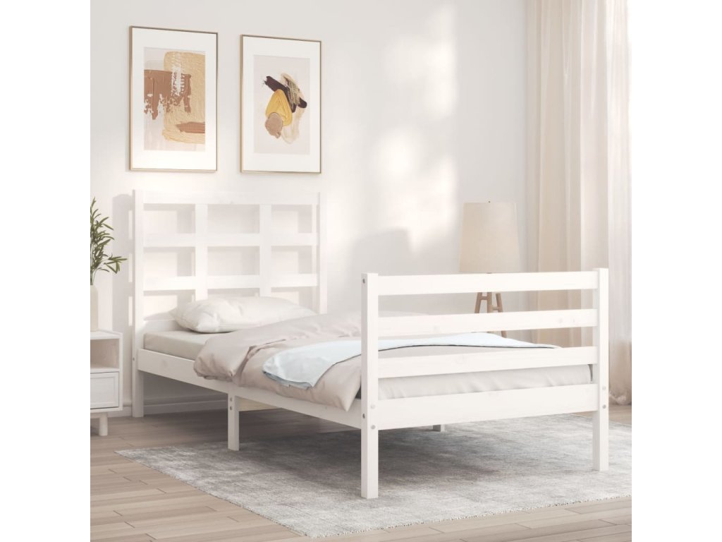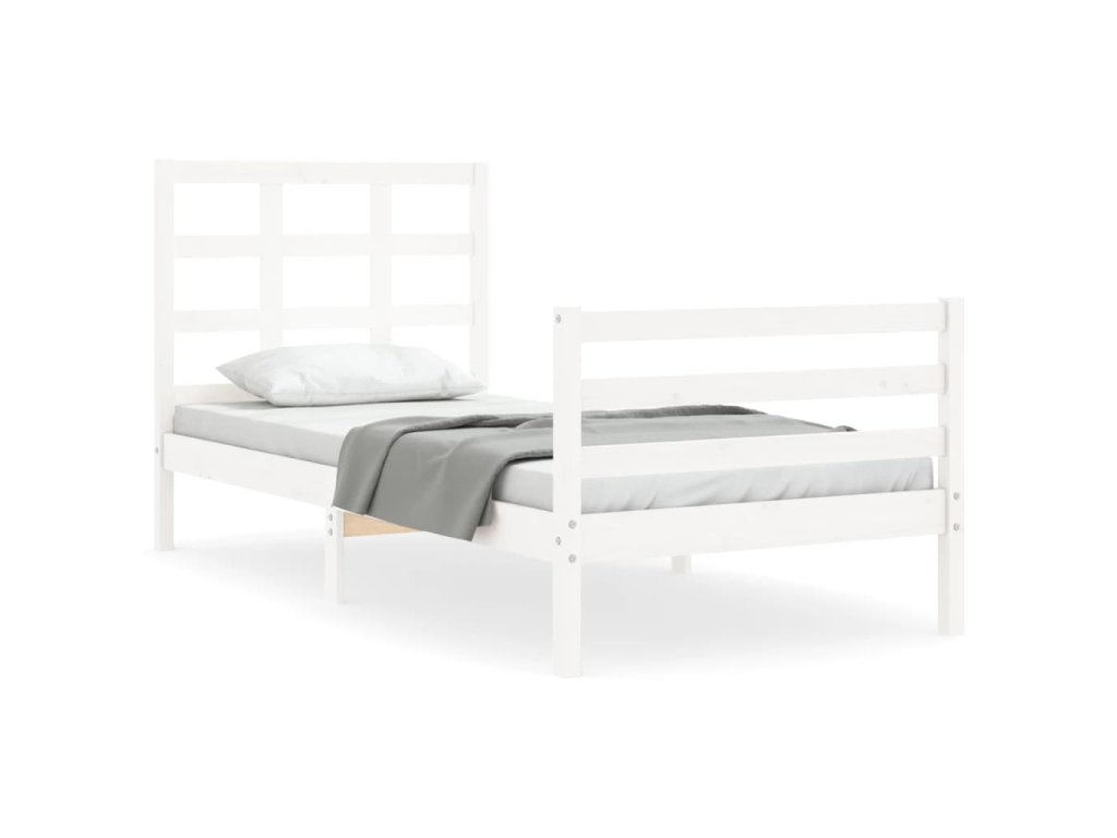 Rám postele s čelem bílý Single masivní dřevo 3193952