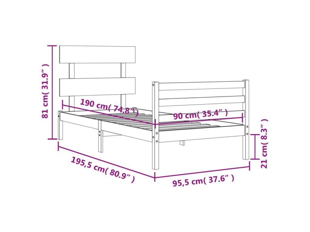 - Celkové rozměry postele: 195,5 x 95,5 x 81 cm (D x Š x V)