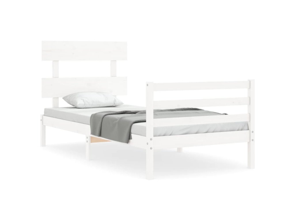 Rám postele s čelem bílý Single masivní dřevo 3195057