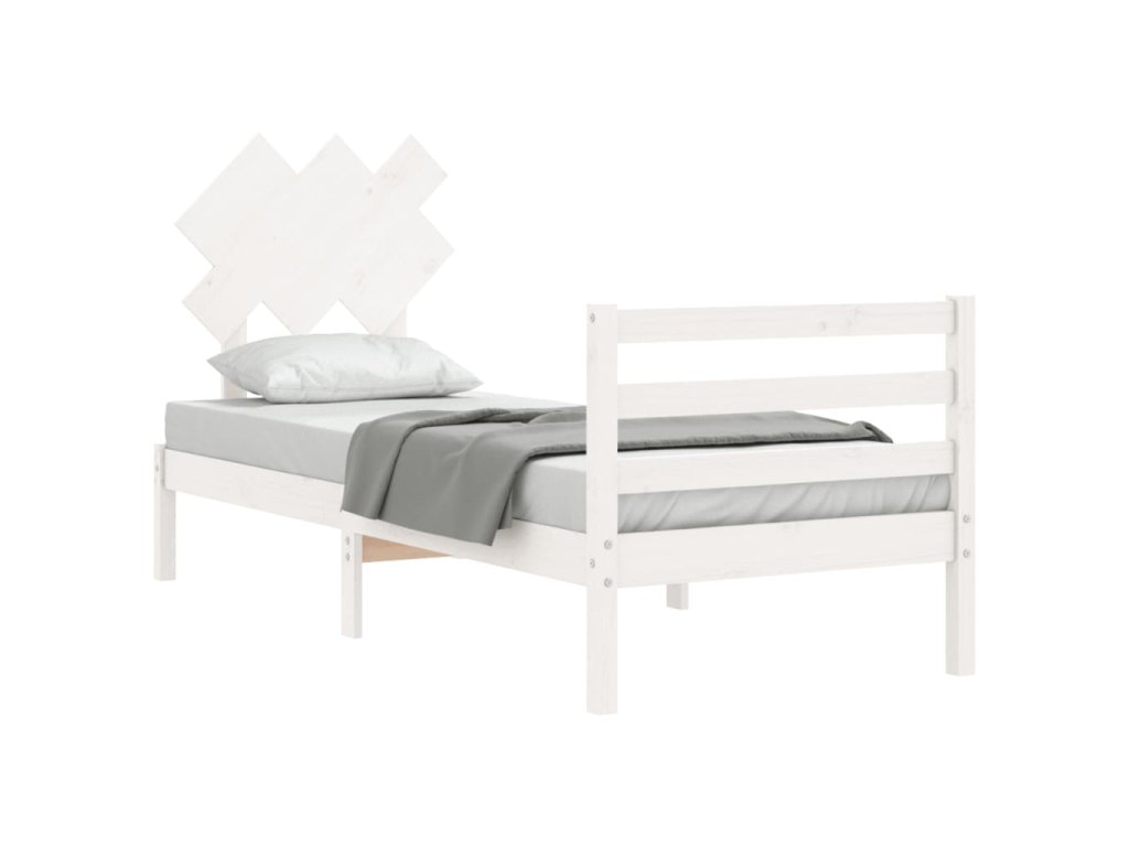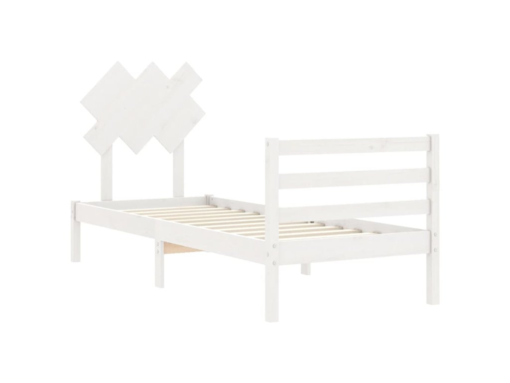 Rám postele s čelem bílý Single masivní dřevo 3195252