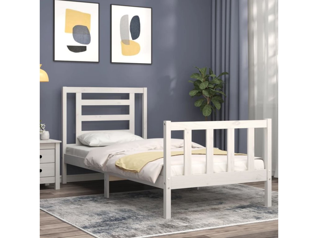 Rám postele s čelem bílý Small Single masivní dřevo 3192842