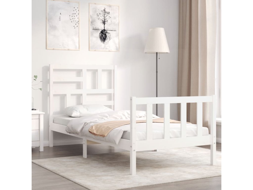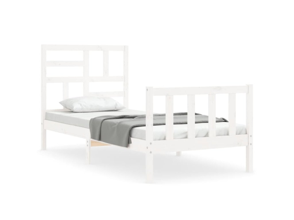 Rám postele s čelem bílý Small Single masivní dřevo 3193037