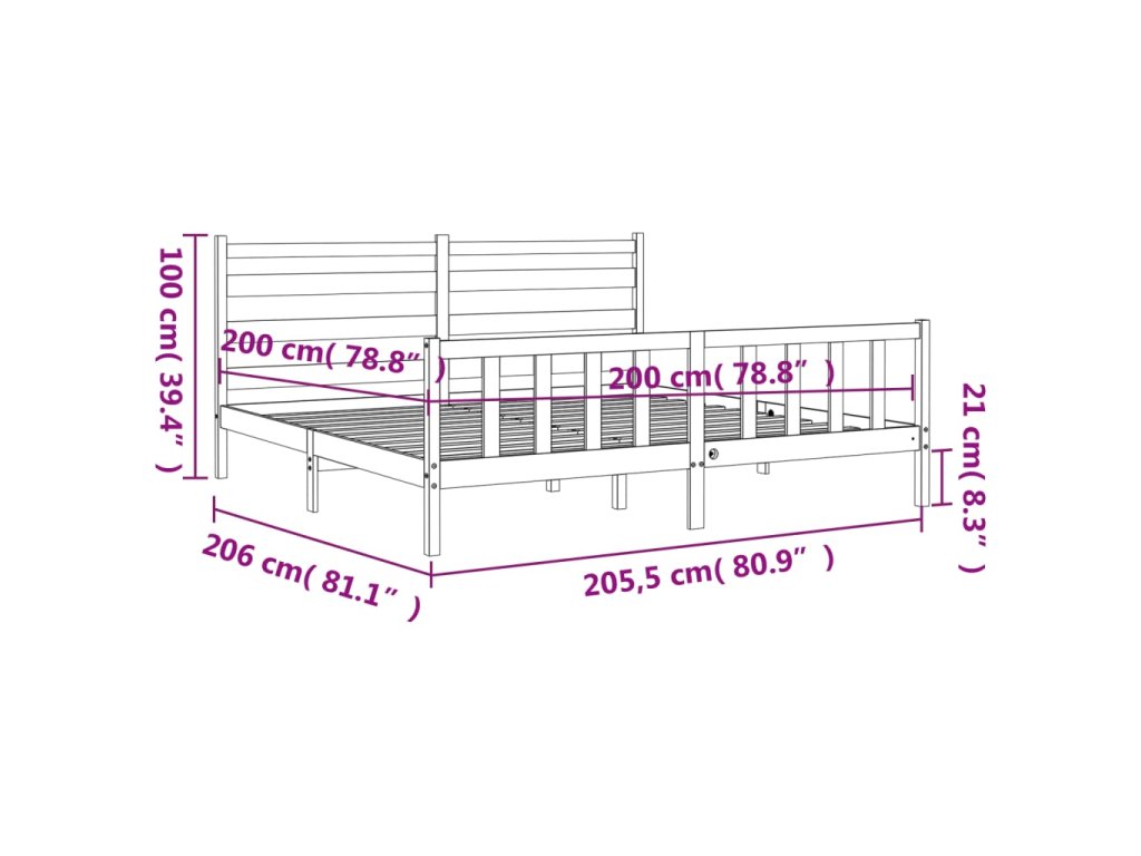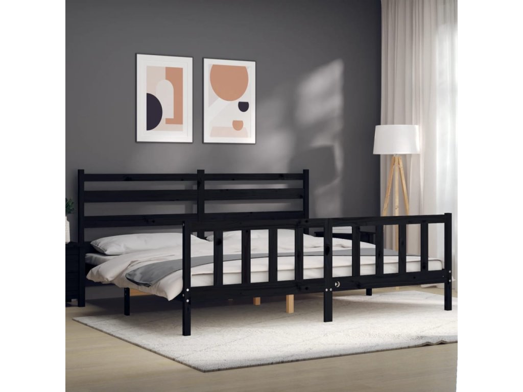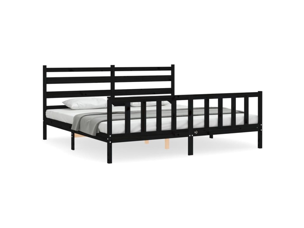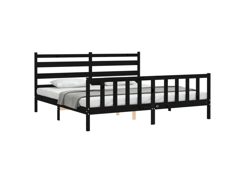Rám postele s čelem černý 200 x 200 cm masivní dřevo 3192060