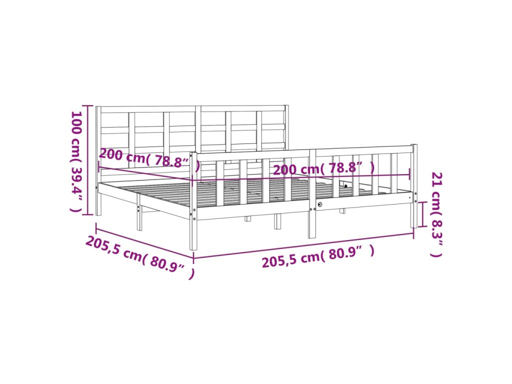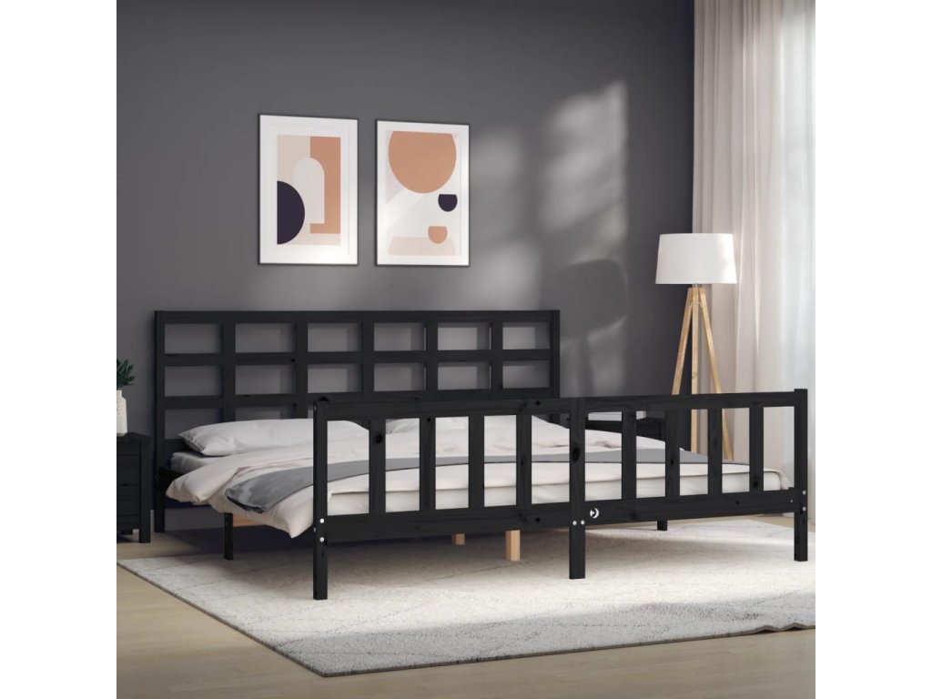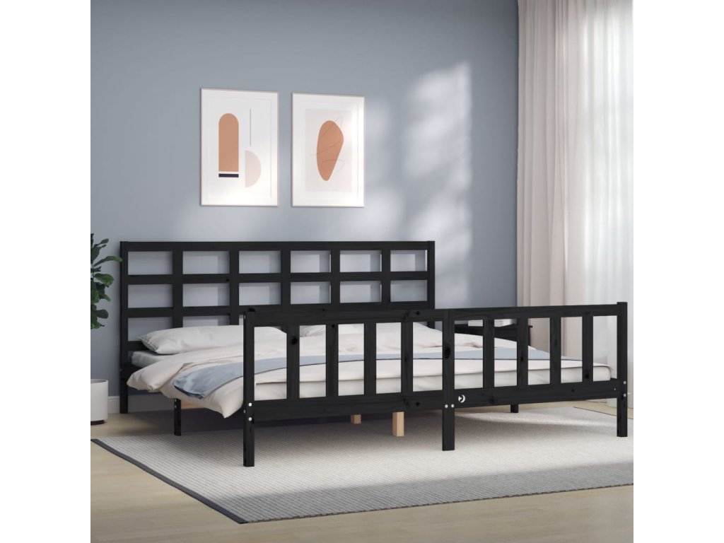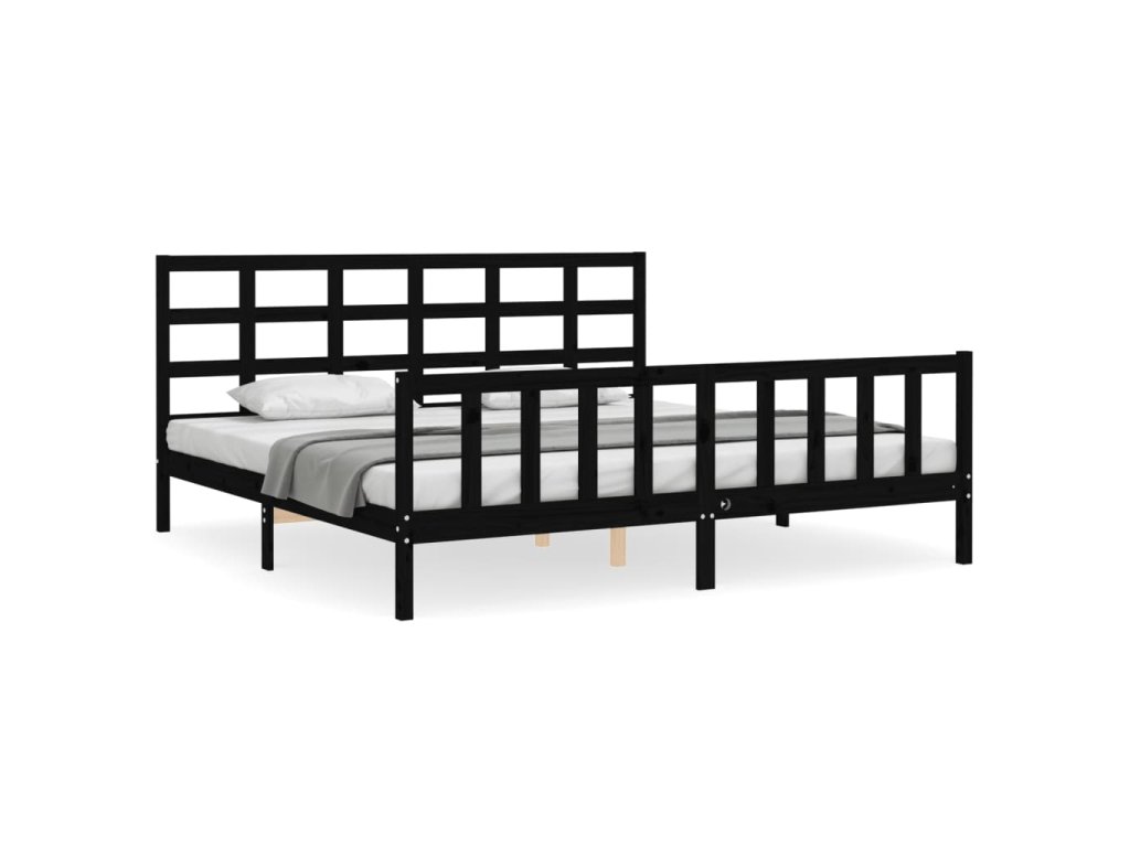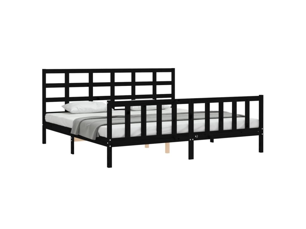 Rám postele s čelem černý 200 x 200 cm masivní dřevo 3192125