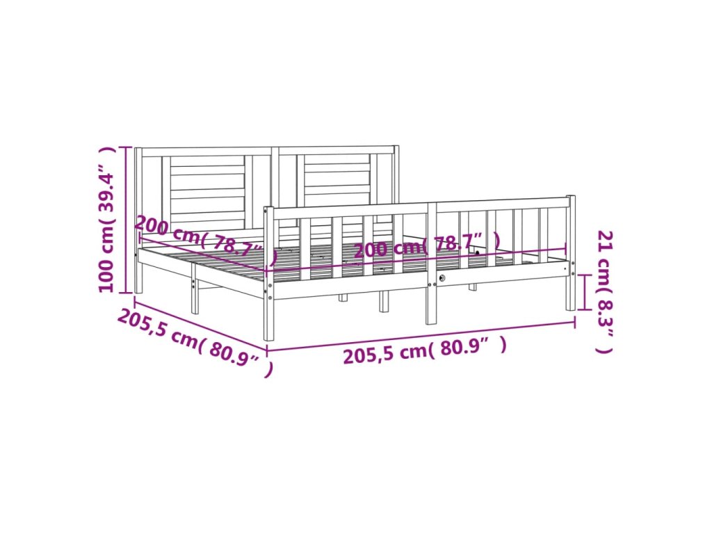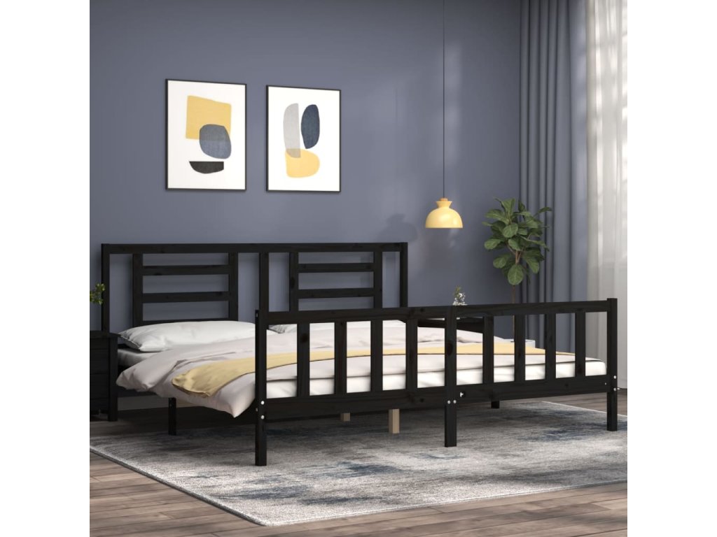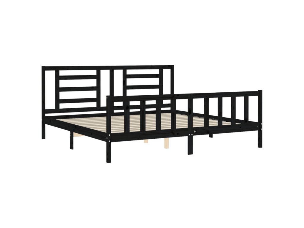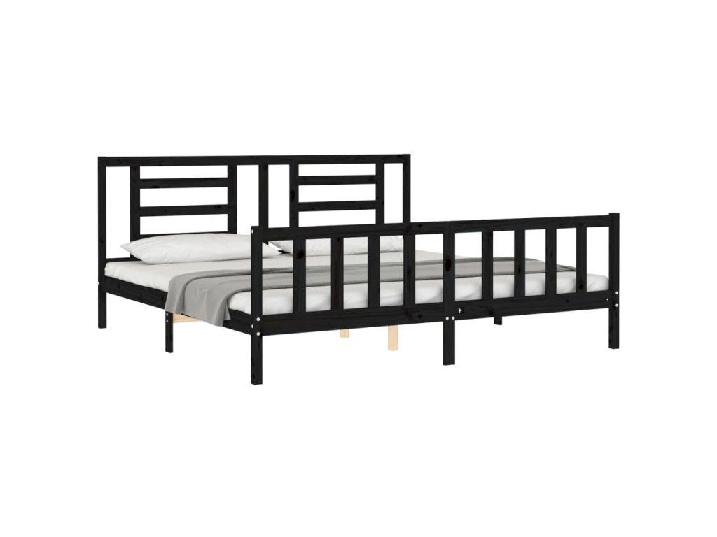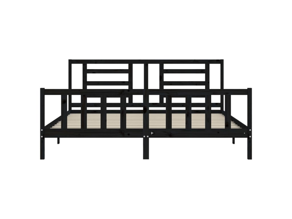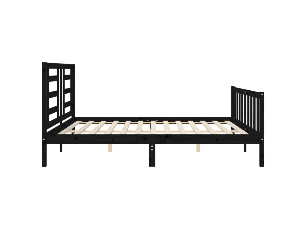Rám postele s čelem černý 200 x 200 cm masivní dřevo 3192905