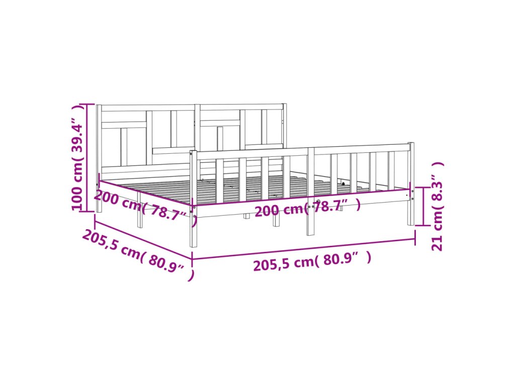 - Celkové rozměry postele: 205,5 x 205,5 x 100 cm (D x Š x V)