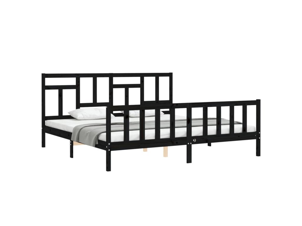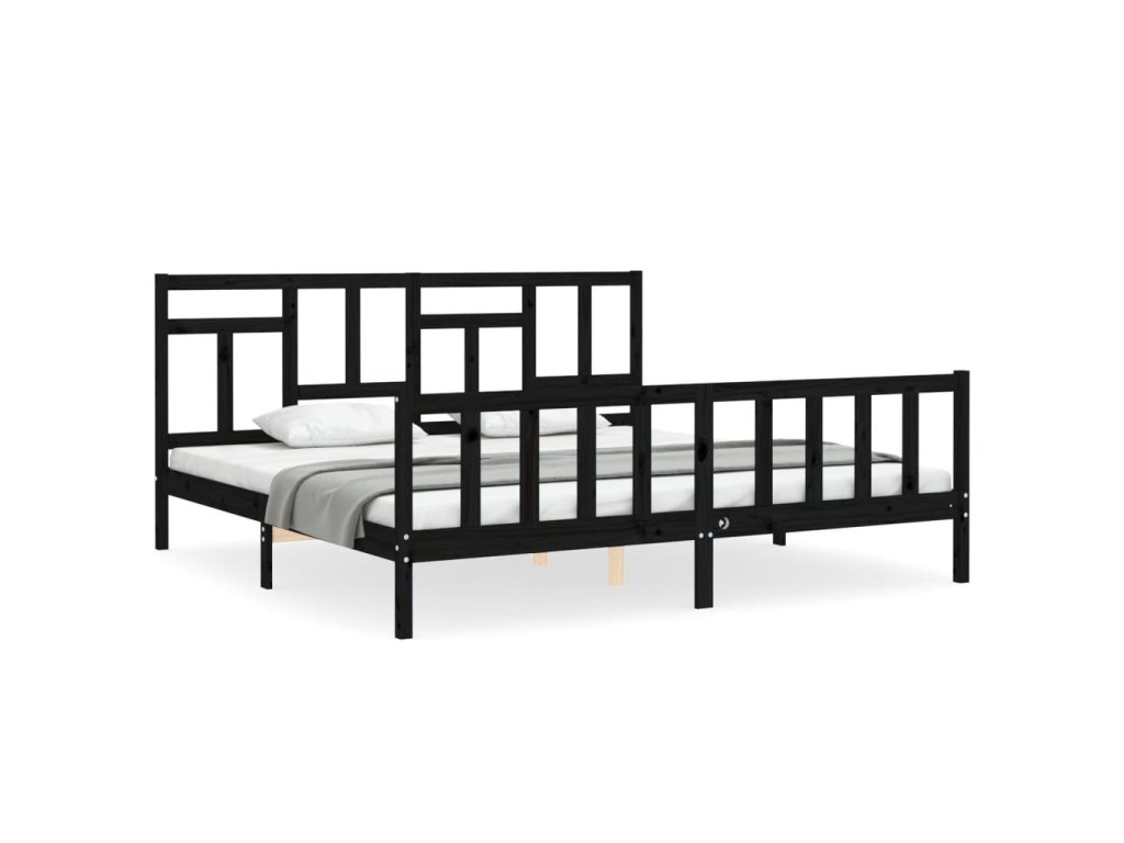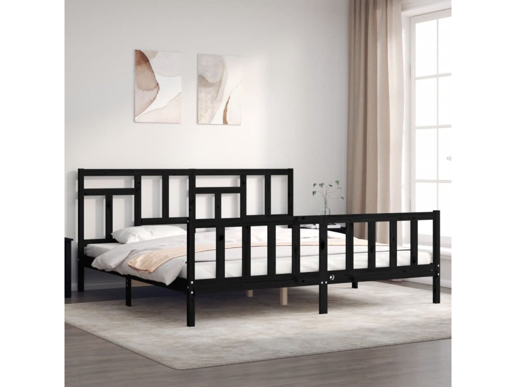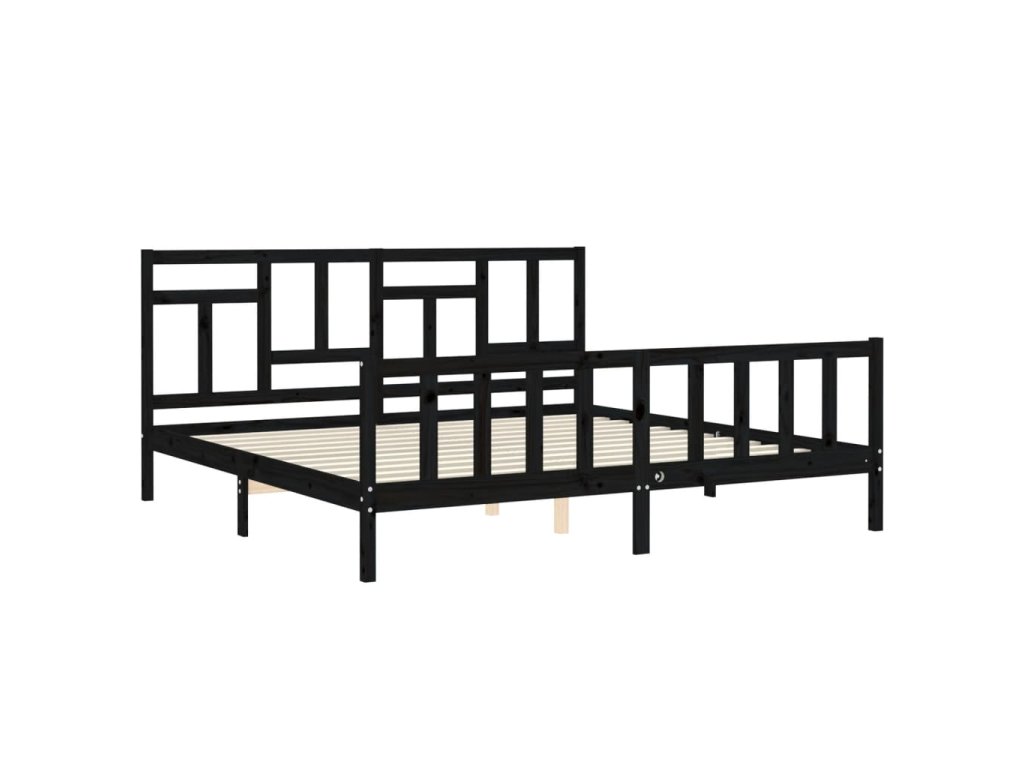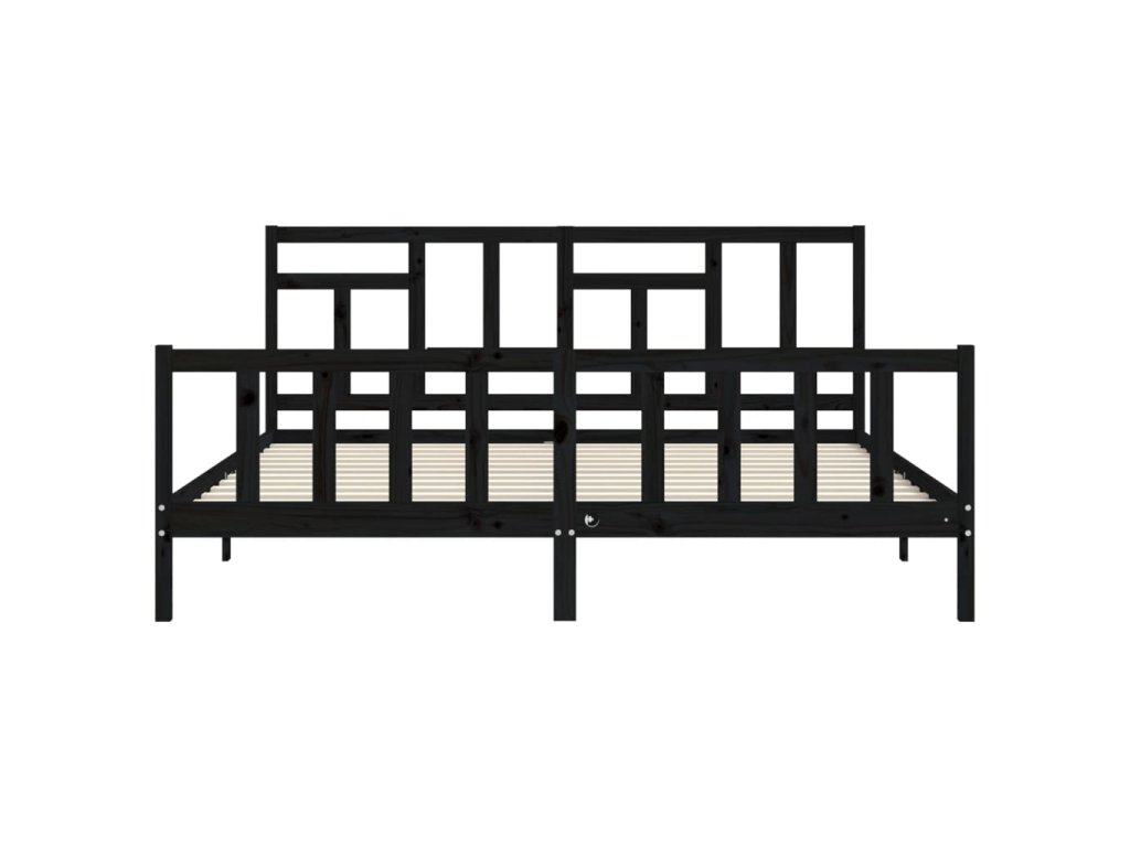 Rám postele s čelem černý 200 x 200 cm masivní dřevo 3193165