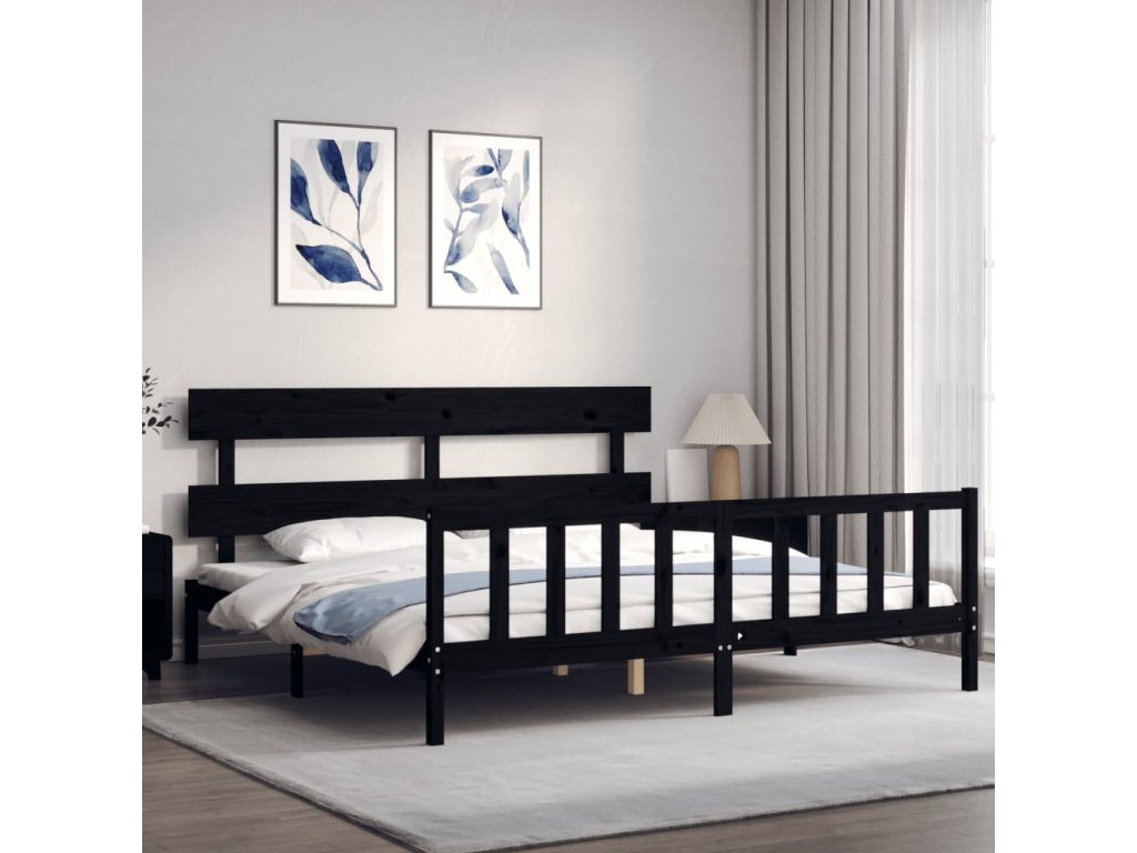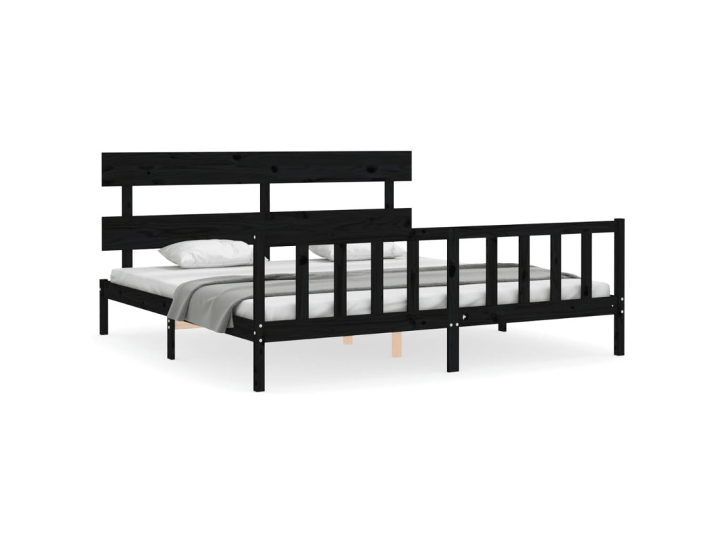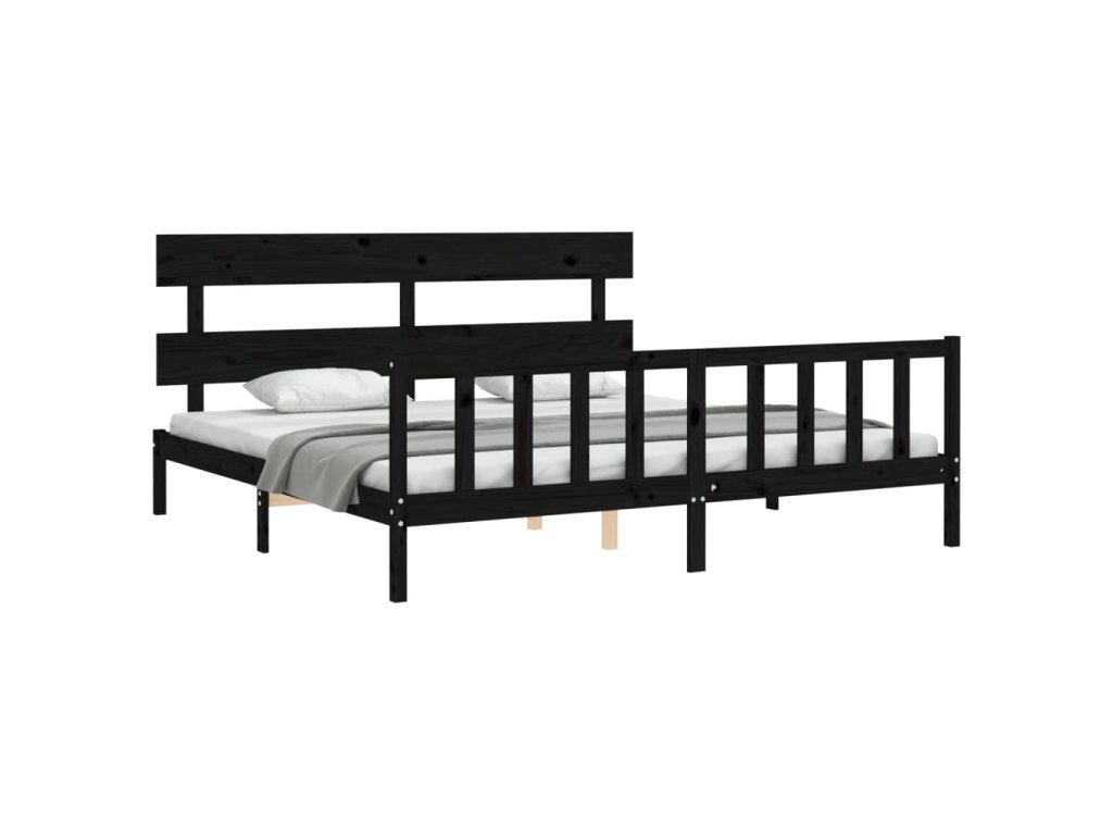 Rám postele s čelem černý 200 x 200 cm masivní dřevo 3193295