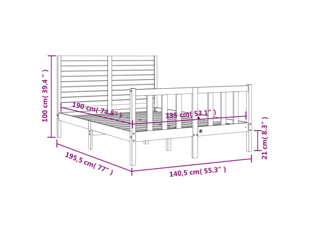- Celkové rozměry postele: 195,5 x 140,5 x 100 cm (D x Š x V)