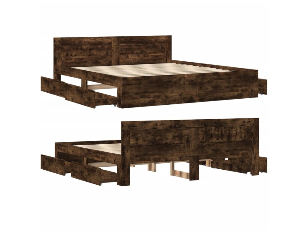 Rám postele s čelem kouřový dub 180 x 200 cm kompozitní dřevo 3295545