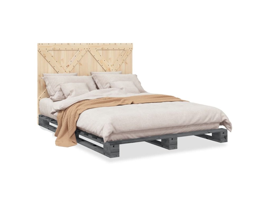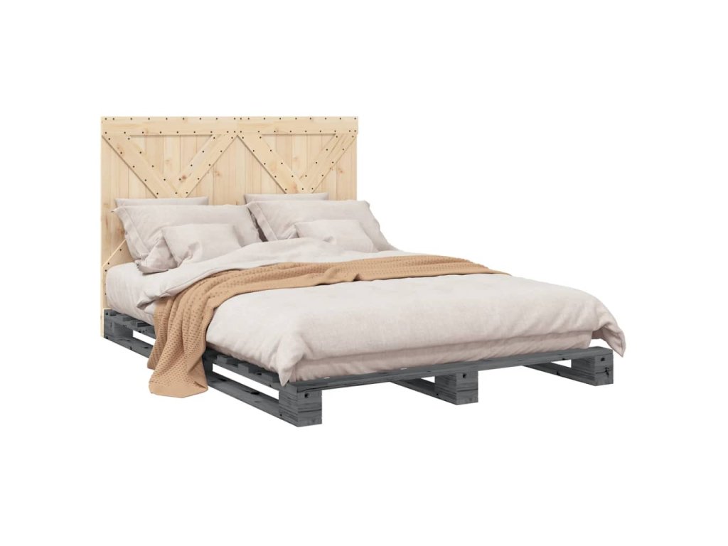 Rám postele s čelem šedý 160 x 200 cm masivní borové dřevo 3281583