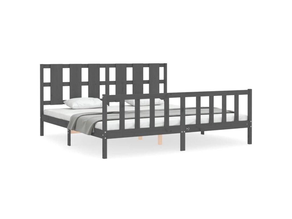 Rám postele s čelem šedý 200 x 200 cm masivní dřevo 3192253