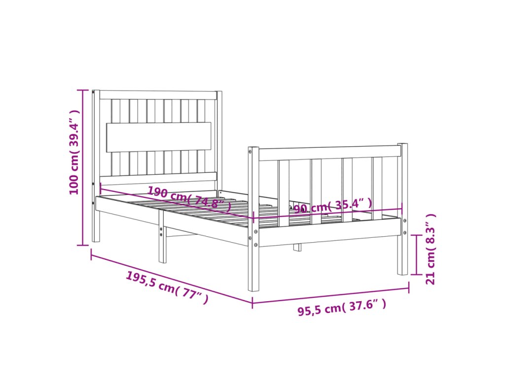 - Celkové rozměry postele: 195,5 x 95,5 x 100 cm (D x Š x V)