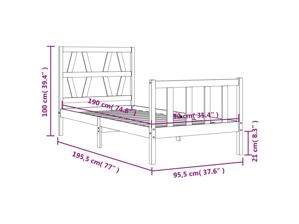- Celkové rozměry postele: 195,5 x 95,5 x 100 cm (D x Š x V)