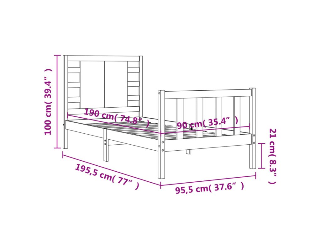- Celkové rozměry postele: 195,5 x 95,5 x 100 cm (D x Š x V)
