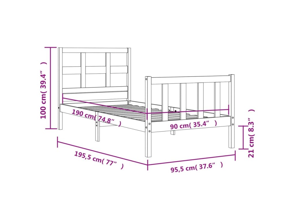 - Celkové rozměry postele: 195,5 x 95,5 x 100 cm (D x Š x V)