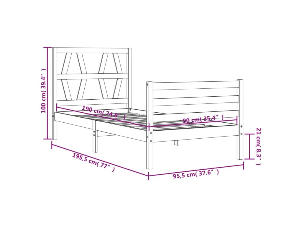 - Celkové rozměry postele: 195,5 x 95,5 x 100 cm (D x Š x V)