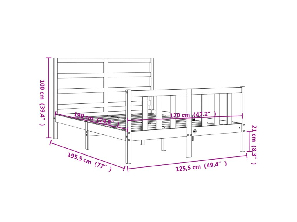 - Celkové rozměry postele: 195,5 x 125,5 x 100 cm (D x Š x V)
