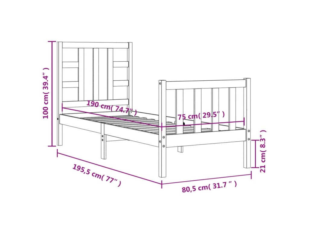 - Celkové rozměry postele: 195,5 x 80,5 x 100 cm (D x Š x V)