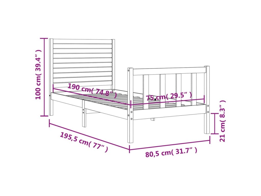 - Celkové rozměry postele: 195,5 x 80,5 x 100 cm (D x Š x V)