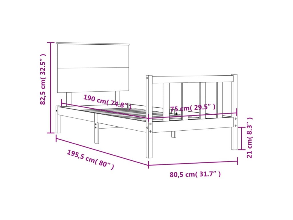 - Celkové rozměry postele: 195,5 x 80,5 x 82,5 cm (D x Š x V)