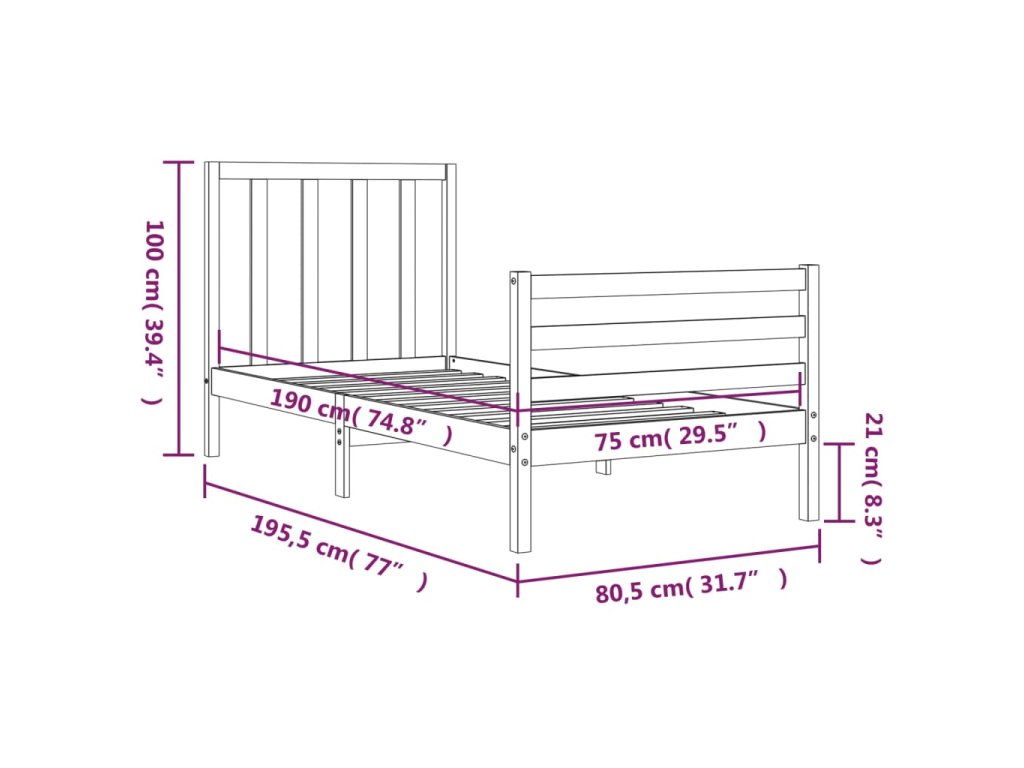 - Celkové rozměry postele: 195,5 x 80,5 x 100 cm (D x Š x V)