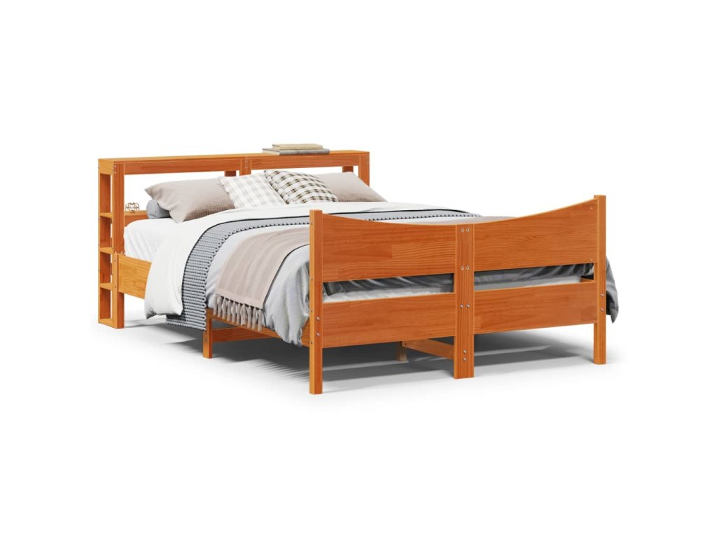 Rám postele s čelem voskově hnědý 135 x 190 cm masivní borovice 3306320
