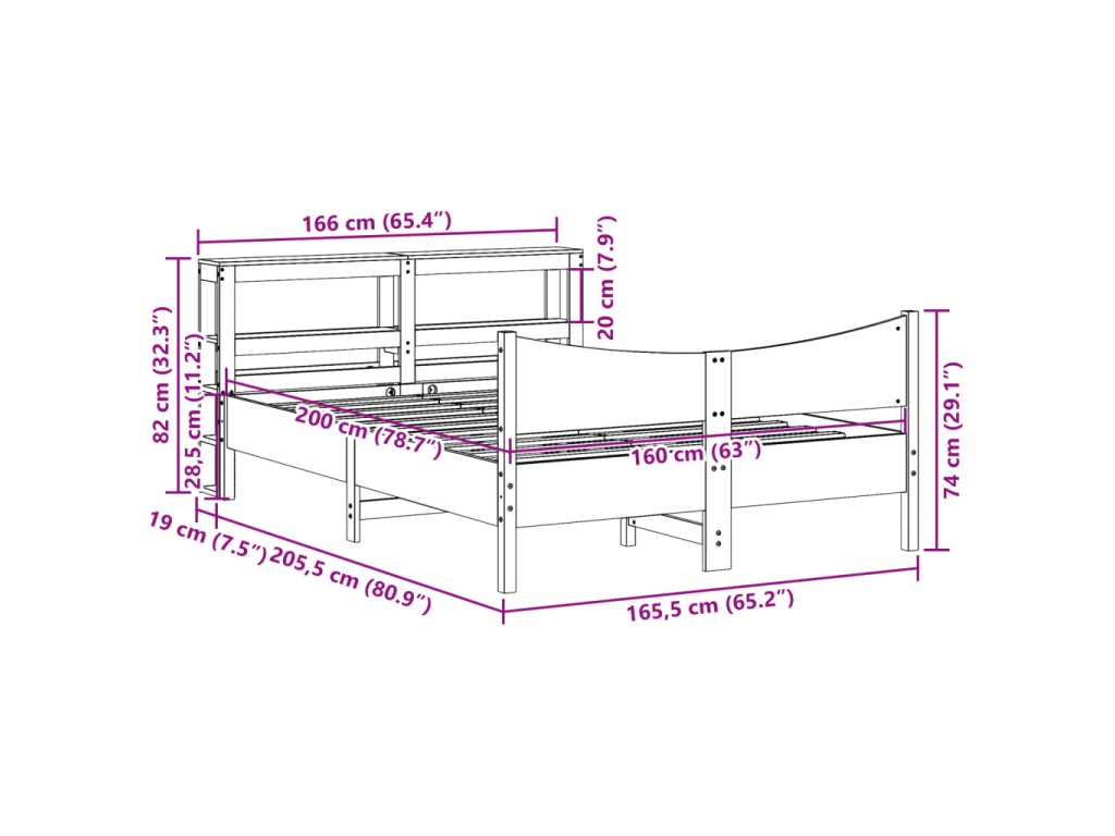 Rám postele s čelem voskově hnědý 160x200 cm masivní borovice 3306299