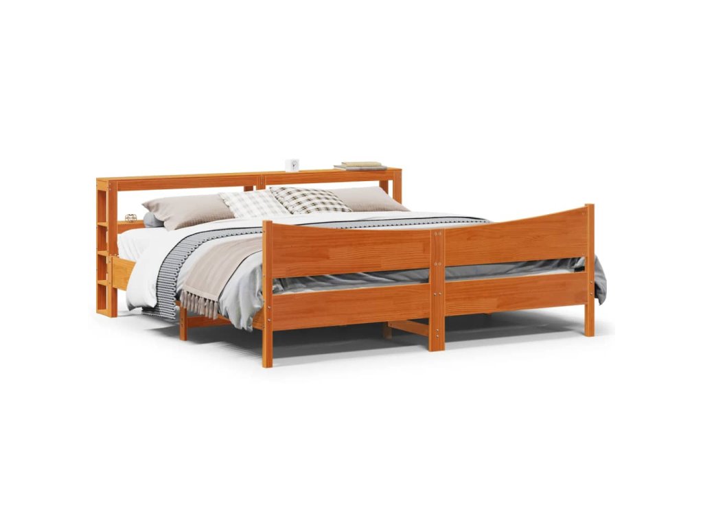 Rám postele s čelem voskově hnědý 200x200 cm masivní borovice 3306293