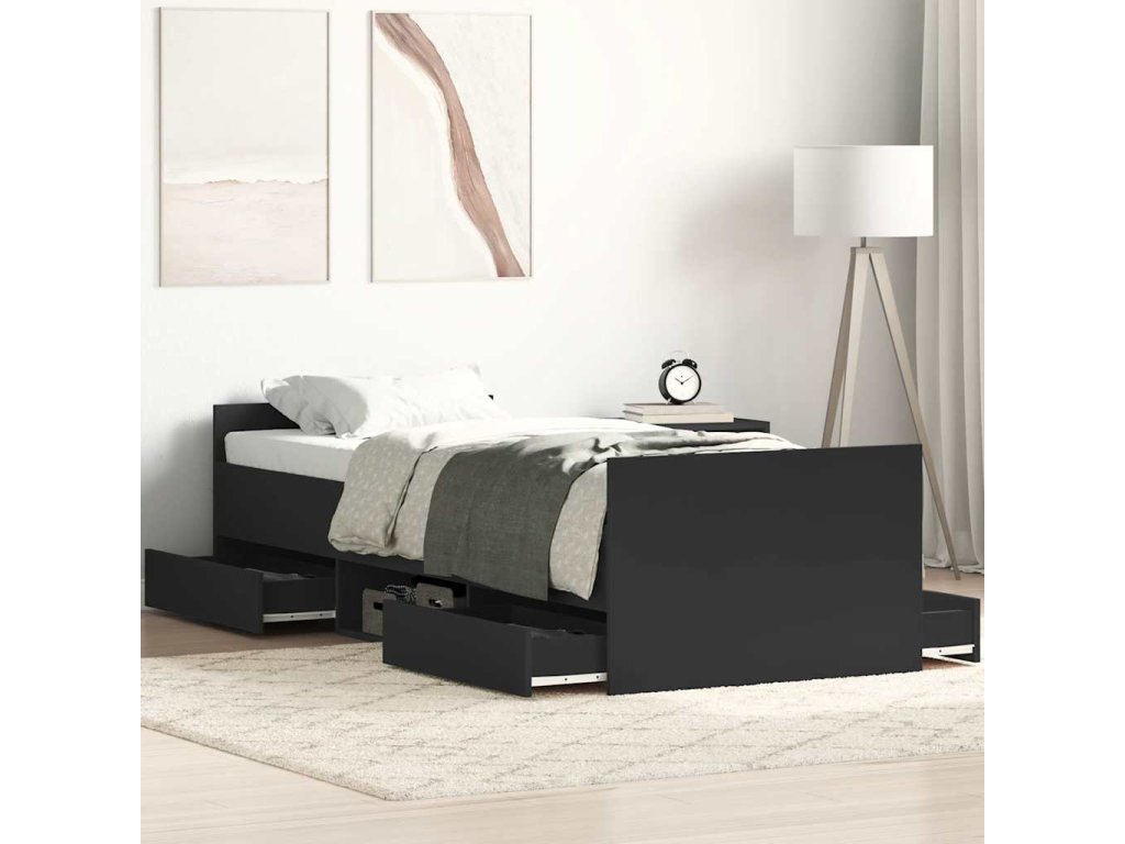 Rám postele s hlavovým a nožním čelem černý 90 x 200 cm 3203804