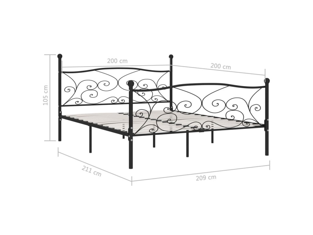 Rám postele s laťkovým roštem černý kov 200 x 200 cm 284460