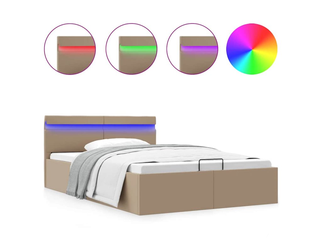 Rám postele s LED a úložištěm cappuccino umělá kůže 120x200 cm 285560