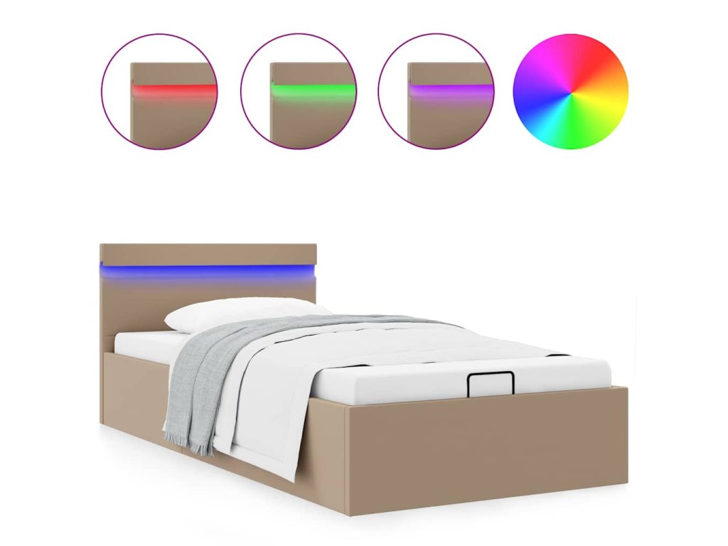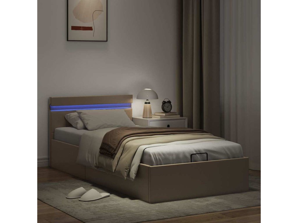 Rám postele s LED a úložištěm cappuccino umělá kůže 90 x 200 cm 285558