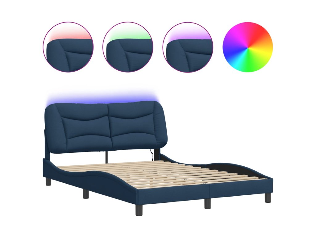 Rám postele s LED bez matrace Hvar Modrá 140x190 cm Látka 3213703