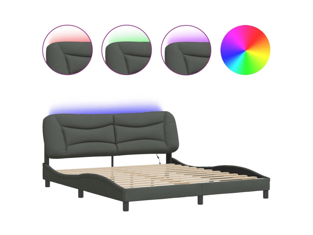Rám postele s LED bez matrace Hvar Tmavě šedá 180x200 cm Látka 3213719